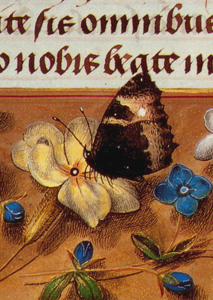 El realismo figurativo ya había comenzado a aparecer en siglos anteriores, aunque no era habitual en textos académicos. Por ejemplo, las numerosas hierbas conocidas se representaban frecuentemente de forma exagerada y horriblemente distorsionadas en su versión como plantas medicinales. Para el aprendiz su valor como guía para identificarlas era escaso; naturalmente, los experimentados herboristas conocían perfectamente bien lo que estaba representado. Para encontrar las primeras ilustraciones naturalistas tenemos que acudir a los artistas religiosos. La fuente más accesible es el Libro de Horas perfeccionado por ilustradores flamencos de los siglos XV y XVI. Un ejemplo es una pequeña y perfecta mariposa de la ortiga posada en una prímula el Libro de Horas de Hasting, pintado antes de 1480. Los pintores religiosos estaban contentos con dibujar imágenes de la naturaleza como una ayuda a la oración y no tenían necesidad de distorsionar o falsificar las imágenes. |