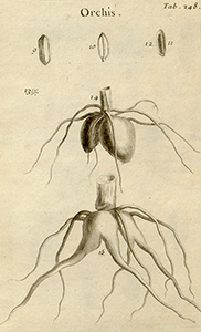 Joseph Pitton de Tournefort [1656-1708], Profesor de Botánica en el Jardin Royal de París, otra figura importante de principios de siglo, fue el primero en publicar sus Élémens de Botanique en París en 1694. Llegó a ser muy conocido por su muy revisada edición inglesa del Compleat Herbal, publicada en dos volúmenes [1719 y 1730]. Tournefort catalogó 8.846 plantas vasculares en su libro, ilustrado con alrededor de quinientos grabados en planchas de cobre. Mientras Maria Sibylle Merian había estudiado el Nuevo Mundo, De Tournefort dejó su puesto en París y partió a explorar Oriente Medio acompañado por Andreas Gundelscheimer, médico, amigo íntimo y naturalista y por Claude Aubriet famoso boticario y dibujante. Se embarcaron en Marsella en 1700 y se dirigieron a Creta donde, durante tres meses, se dedicaron a recolectar plantas . Después de explorar las islas del Egeo viajaron a Turquía, pasando algún tiempo en las regiones armenias y kurdas de camino hacia Georgia, descubriendo muchas nuevas especies a los botánicos orientales. Tournefort publicó un relato sobre el viaje y sus hallazgos en un libro ilustrado por Aubriet: El Voyage au Levant de 1718. Los grabados son reconocibles pero hechos sin ingenio ni gracia. Como en el caso de las publicaciones de Sybille Merian de la misma época, hay perceptibles resonancias de herbarios y otros libros ilustrados de épocas más tempranas. Sin embargo, con los Élémens de Botanique Tournefort había creado el primer tratado completo sobre botánica, y los trabajos de taxónomos posteriores [Linnaeus, por ejemplo] deben considerarse junto a este tratado. Aubriet también ilustró varias obras sobre botánica. Sus estudios eran estilizados, pero el vigor de su temperamento, en lugar de estropear, aumentó el vívido realismo con el que interpretó sus temas