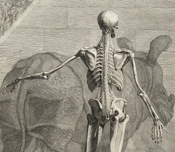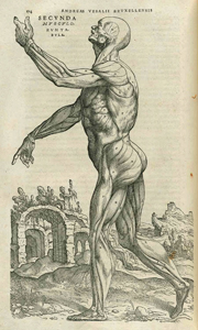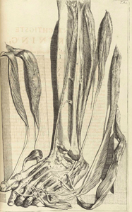 Cuando comenzó el siglo XVII, las antiguas enseñanzas de muchos de los anatomista venerados todavía persistían. Habían sido muy modificadas por Andreas Vesalius [1514-1564] cuyo De Humani Corporis Fabrica [1543],publicado cuando el autor tenía sólo 28 años, contenía 600 ilustraciones de grabados en madera. Permaneció como fuente de referencia popular hasta principios del siglo XVIII. Curiosamente, uno de los grandes trabajos ilustrados del siglo XVIII sobre anatomía humana fue escrito por un contemporaneo de Vesalius. Este fue la Tabulae Anatomicae Viri de Bartolomeo Eustachio [1524-1574]. Sus grabados en cobre son abundantes y sorprendentes. Este tratado se completó hacía 1552 pero no se publicó hasta 1714, cuando las planchas fueron encontradas en un almacen en Roma. Como hemos visto, este intervalo de tiempo de más de un siglo y medio sólo fue superado por el retraso de dos siglos en la publicación del Florilegium. Su aparición casi coincide con la publicación de Anatomy of the Humane Body [1712] de William Cheselden. Este repentino frenesí de nuevas publicaciones sirvió para estimular la investigación y en las siguientes décadas la ilustración anatómica aumentó significativamente. Los estudios sobre el primer trabajo de Cheselden se prolongó y mejoró en su Osteographia [1733], llegando a convertirse en la obra de referencia. Las imágenes son correctas, aunque carecen de buenos detalles. Algunas de ellas muestran el cuerpo humano en acción, ocasionalmente como dos formas en combate. Eran imágenes inspiradas de la época y plagiadas por Sir Charles Bell un siglo más tarde cuando empezó a recopilar su propio trabajo sobre la anatomía del esqueleto.