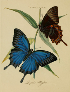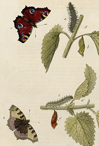 A comienzos de siglo, algunos de los más bellos libros sobre los lepidopteros ya estaban impresos. James Edward Smith publicó su Natural History of the Rarer Lepidopterous Insects of Georgia, from the Observations of John Abbott en 1797, y la asombrosa y vívida variedad de los insectos representada en libros como en la Illustrations of Natural History wherein are Exhibited Figures of Exotic Insects de Dru Drury[1770-82], muestra cuan atractivas pueden llegar a ser las imágenes de los grabados en cobre coloreados a mano. La cima de la perfección en la ilustración de insectos se debe a Epitome of the Natural History of the Insects of India de Edward Donovan. Fue grabado y ricamente coloreado a finales de siglo, su lanzamiento en 1800 fue un éxito. |
