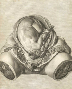 William Hunter, mientras tanto, especializado en obstetricia desde 1756 empezó a establecer esta ciencia como una rama de la medicina oficial en lugar de considerarla solo un oficio para comadronas. Con Jan van Rymsdyk a su lado, Hunter hizo estudios detallados del útero humano durante el embarazo y el parto. Publicó tres trabajos, el resultado de sus estudios anatómicos obstetricos aparecen en The Anatomy of the Human Gravid Uterus [1774]. Este es un trabajo estupento, repleto de valiosas y precisas ilustraciones con una calidad genial y un realismo brillante. Su trabajo fue seguido, al finalizar el siglo, por el Museum Anatomicum de Eduard Sandifort [1793-1835]. Este libro estupendo que representa llamativos – aunque estilizados – grabados de la anatomía humana, no fue reemplazado hasta que Henry Gray publicó su famosa Anatomy en 1858. Hasta hoy, a finales del siglo XX y principios del XXI, la Anatomía de Gray continúa siendo el texto de enseñanza oficial. |