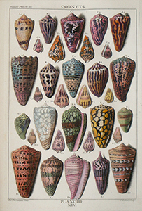 El año 1742 señaló la publicación de dos trabajos con impresionantes láminas en formato folio: un libro de Antoine-Joseph Dezallier d'Argenville titulado Le Lithologie et la Conchyliologie [1742] y el Index Testarum Conchyliorum de Niccolo Gualtieri. John Ellis publicó Essay towards a Natural History of the Corallines [1755], seguido por History of the Zoophytes [1786],ambos ilustrados con grabados. Entre los libros de mayor calidad sobre conquiliología estaban aquellos con las láminas coloreadas a mano. Thomas Martyn publicó The Universal Conchologist en cuatro volúmenes entre 1743 y 1778, contenía tantas extraordinarias imágenes que pocas copias han sobrevivido con las 160 láminas intactas. La mayor ilustración coloreada de cualquier libro sobre conchas apareció en el Choix de Coquillages et des Crustaces [1758], las imágenes de éste son notablemente más precisas que las de Neues Systematisches Conchylien-Cabinet (1769-95), de F. H. W. Martini y J. H. Chemintz. Estos tomos son tan impresionantes y magníficos que debieron haber servido de gran estímulo a los esfuerzos de los filósofos de la naturaleza.