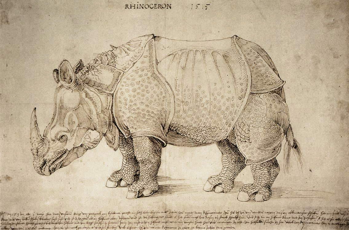 Rhinoceros [1515] Dibujo a lapiz, 27.4 x 42 cm British Museum, London