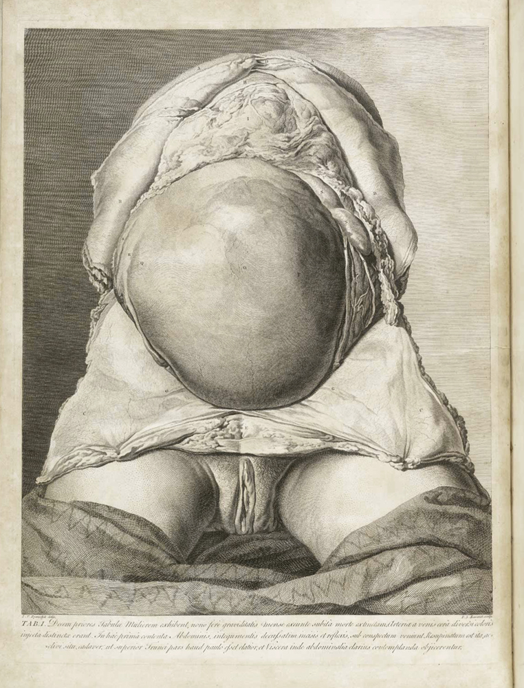 Lámina I Anatomia uteri humani gravidi tabulis illustrata William Hunter [1718-1783] Birmingham: John Baskerville, 1774 [Historical Anatomies Home on the Web]