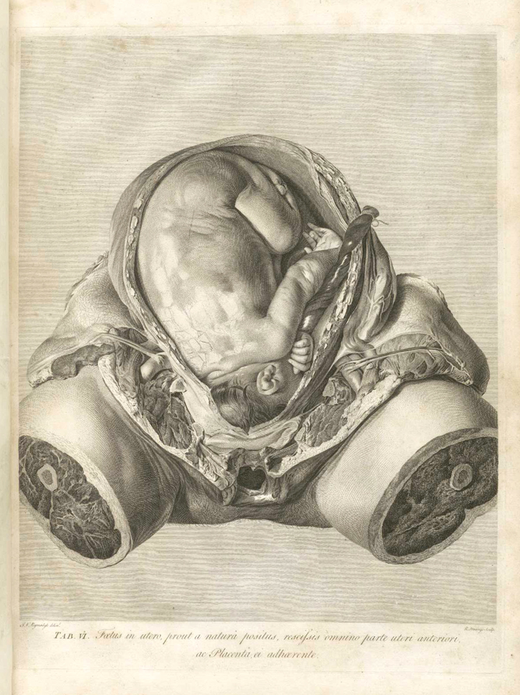 Lámina XII Anatomia uteri humani gravidi tabulis illustrata William Hunter [1718-1783] Birmingham: John Baskerville, 1774 [Historical Anatomies Home on the Web]