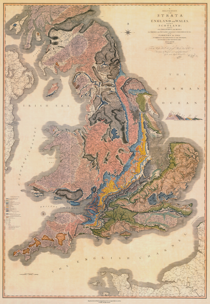 A Delineation of the Strata of England and Wales with a Part of Scotland, Exhibiting the Collieries and Mines, the Marshes and Fen Lands Originally Overflowed by the Sea, and the Varieties of Soil According to the Variations in the Substrata, Illustrated by the Most Descriptive Names”